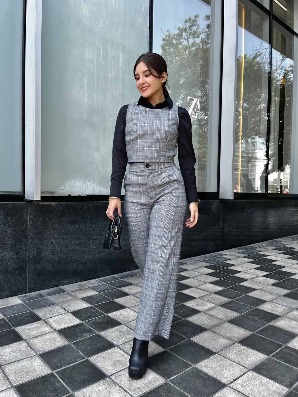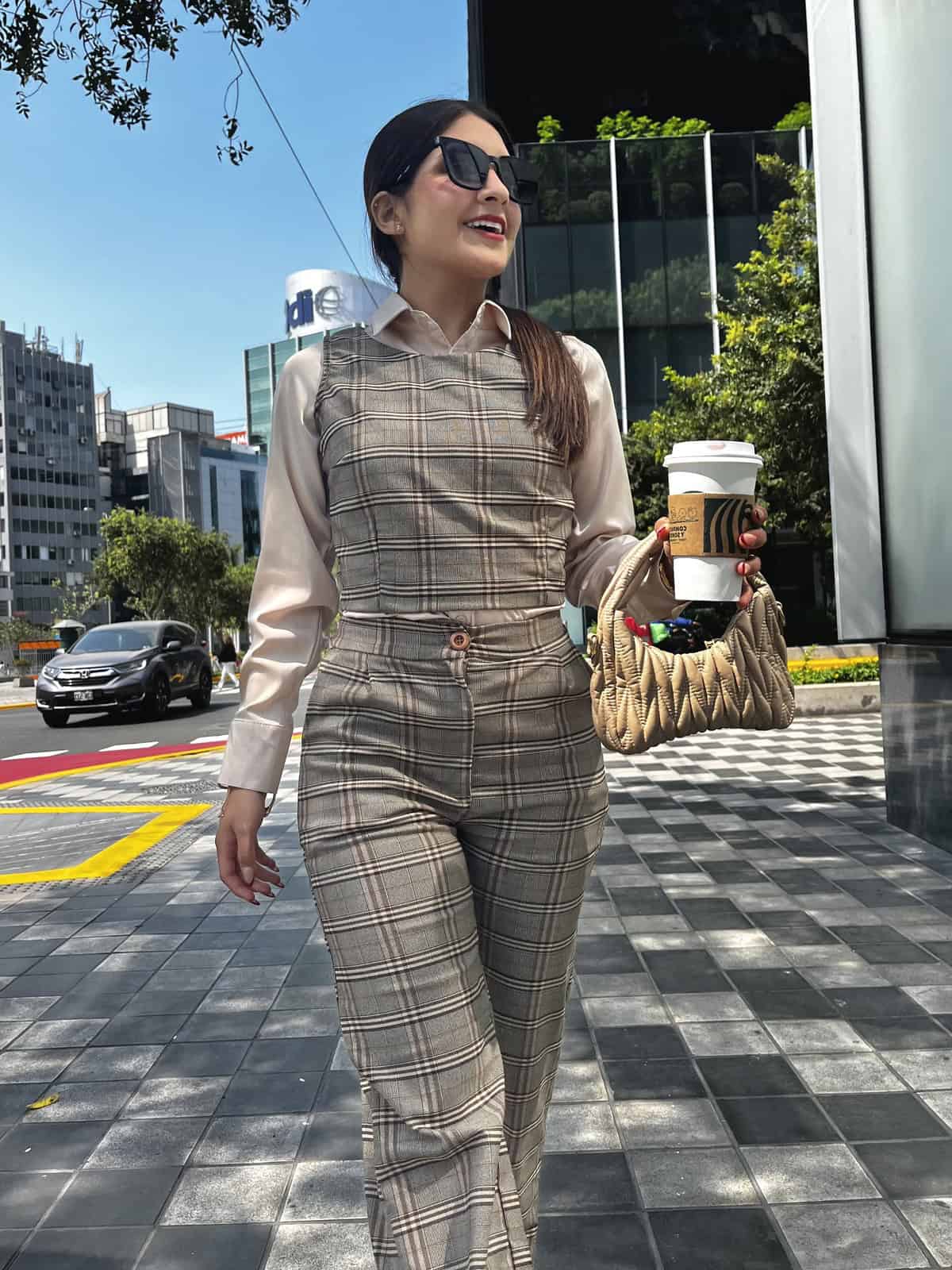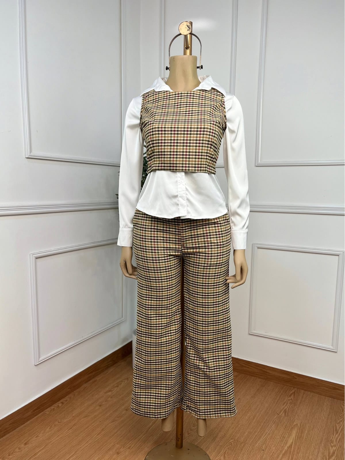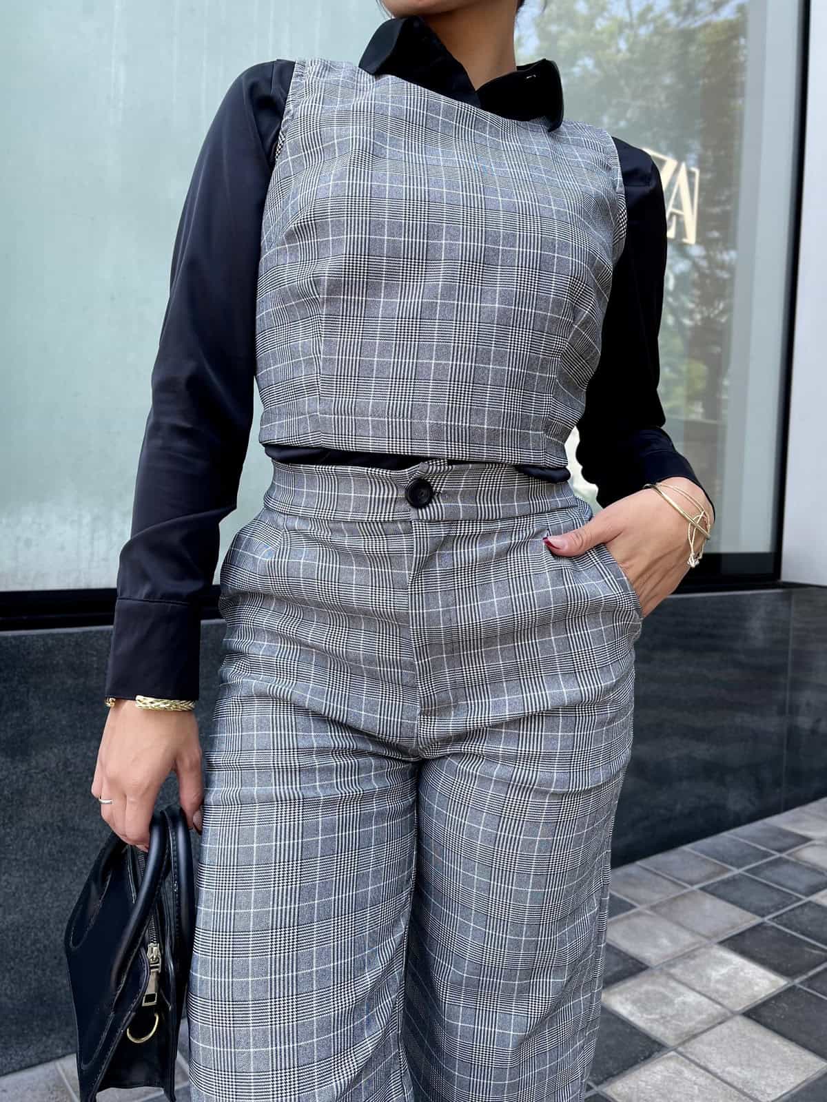 Hermoso conjunto a cuadros 2 piezas, pantalon + chalecon con cierre en la parte de atras