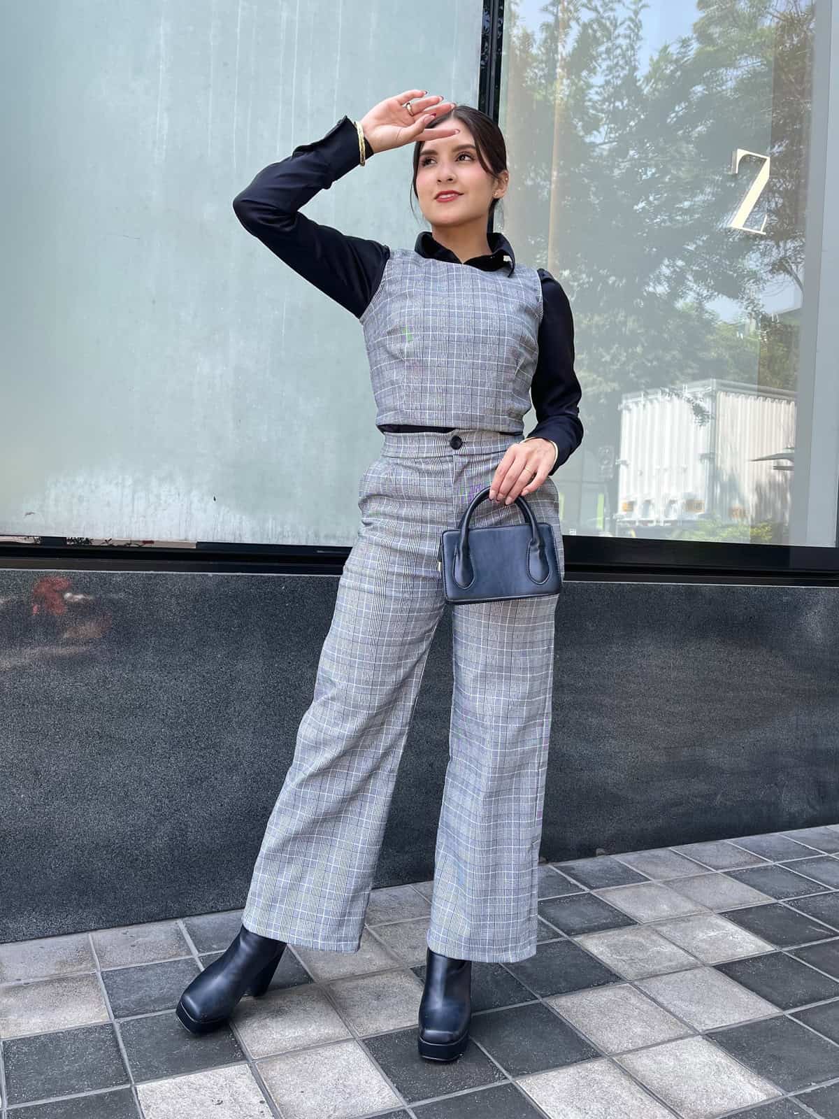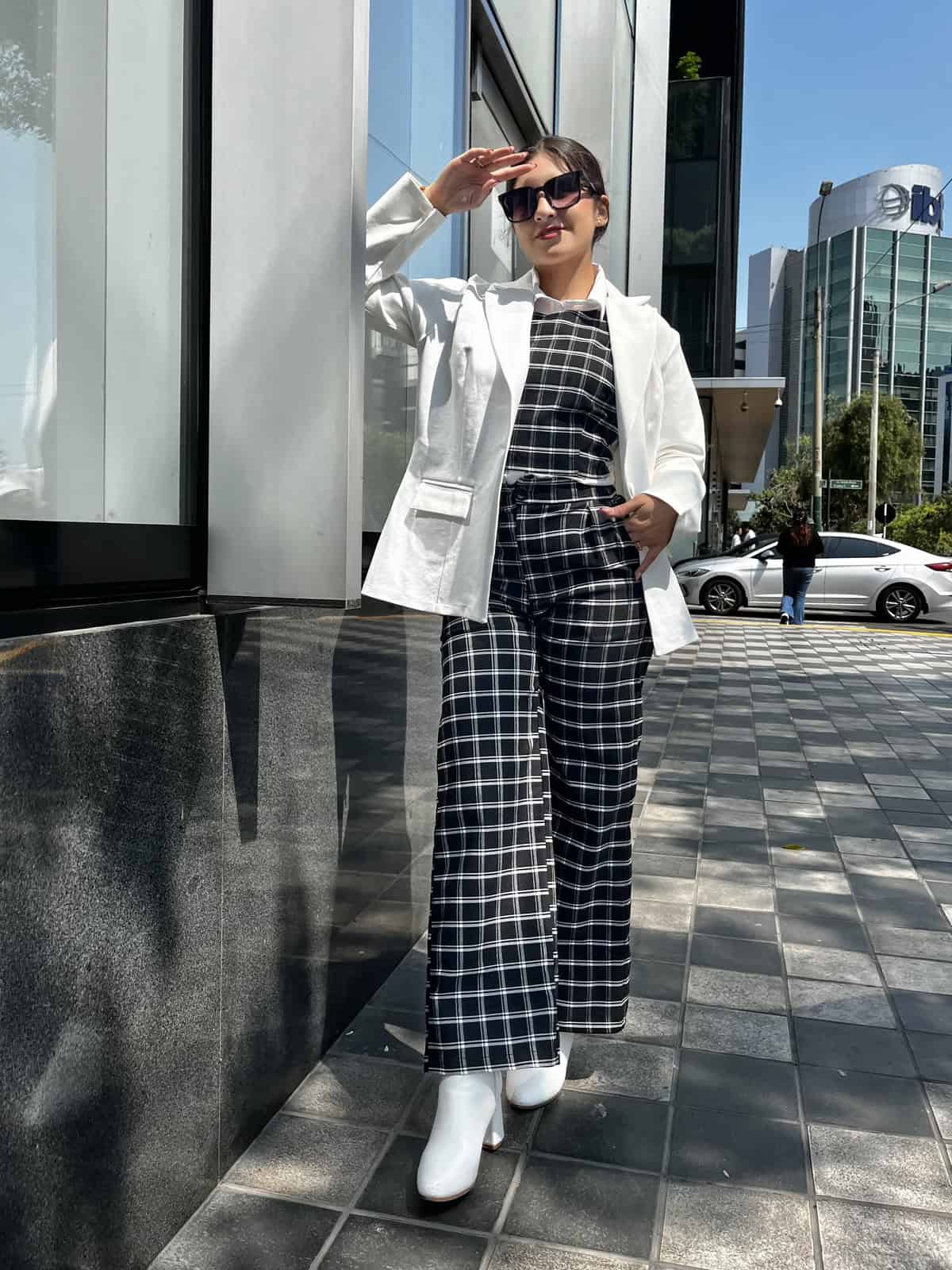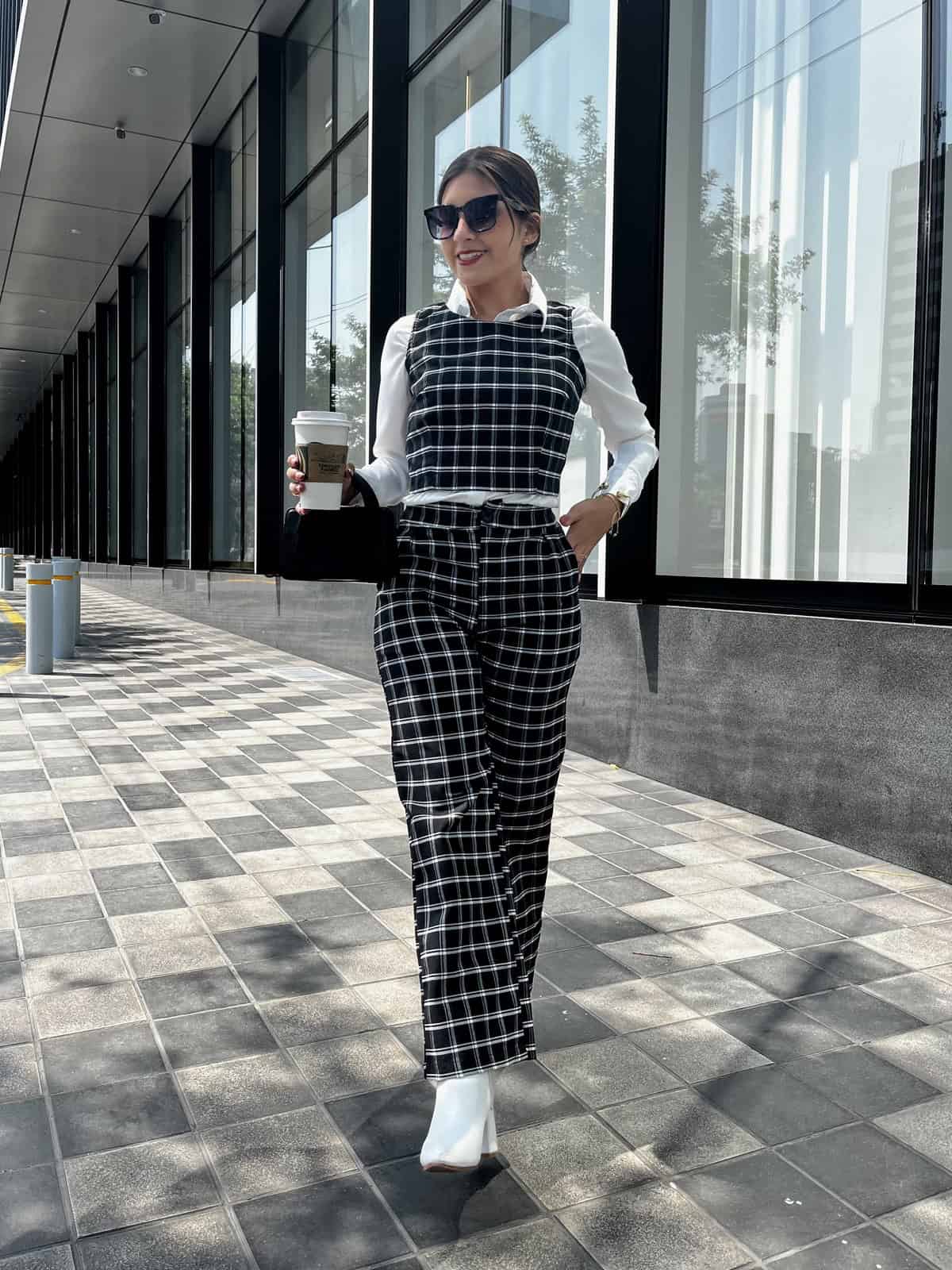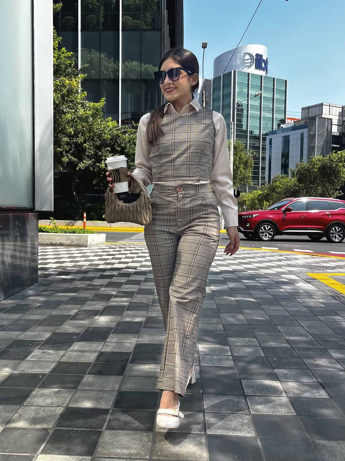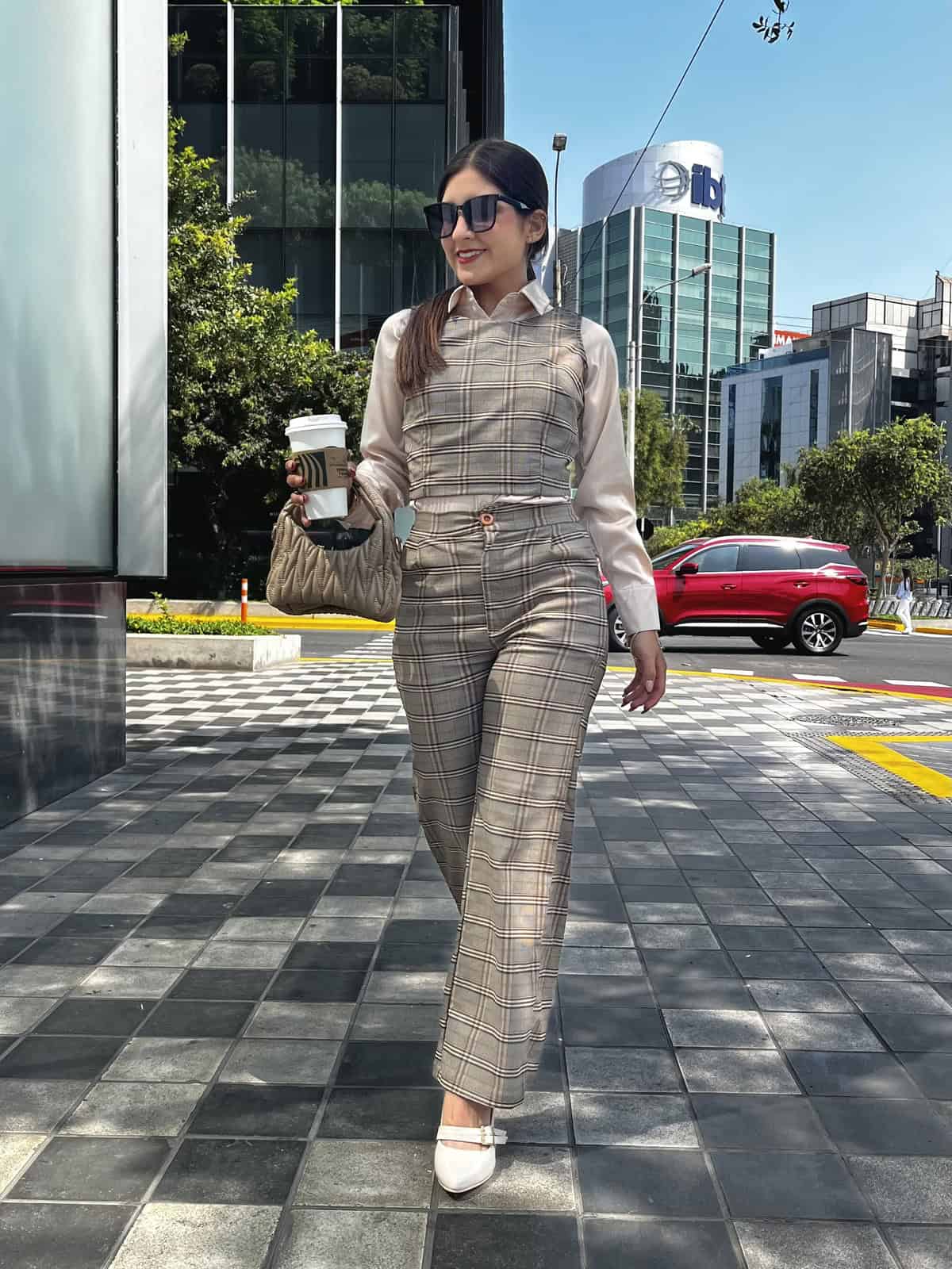 Hermoso conjunto a cuadros 2 piezas, pantalon + chalecon con cierre en la parte de atras