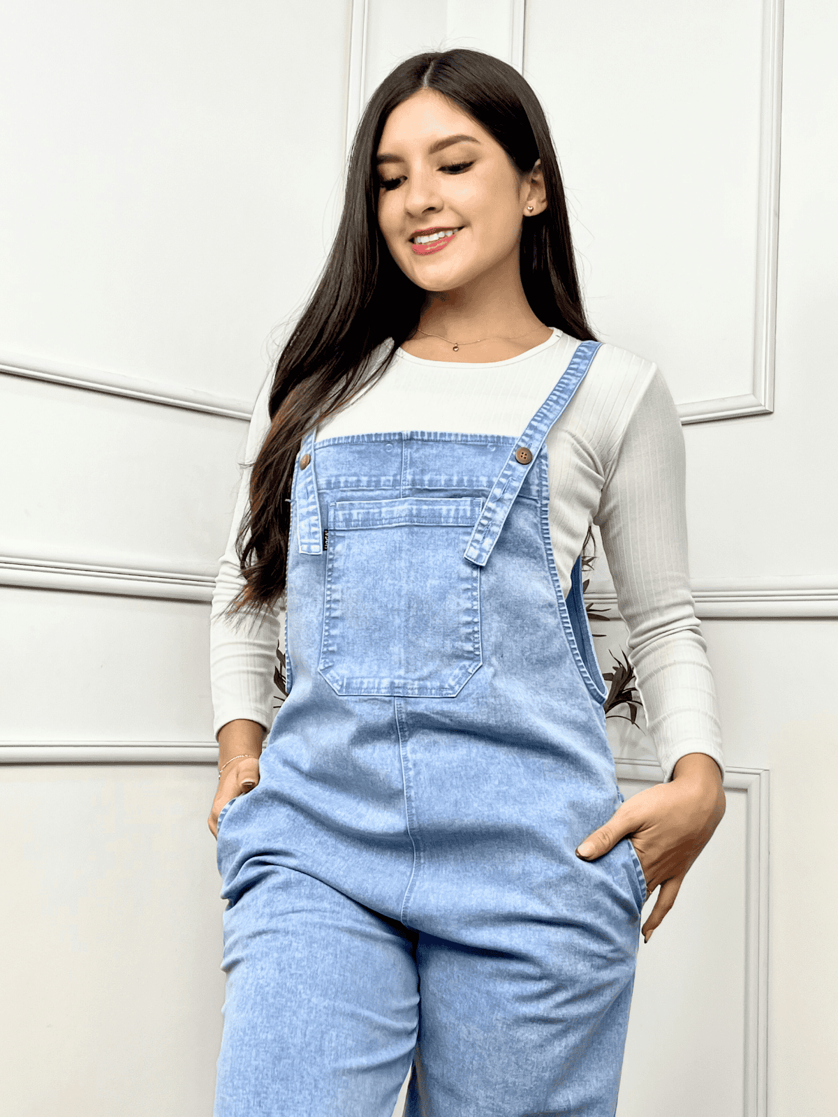 Overol en material denim stretch que se adapta a tu figura sin perder comodidad. Su diseño moderno y versátil lo convierte en la prenda perfecta para crear looks casuales y llenos de estilo. ¡Combínalo con tus polos o tops favoritos y luce increíble en cualquier ocasión!
