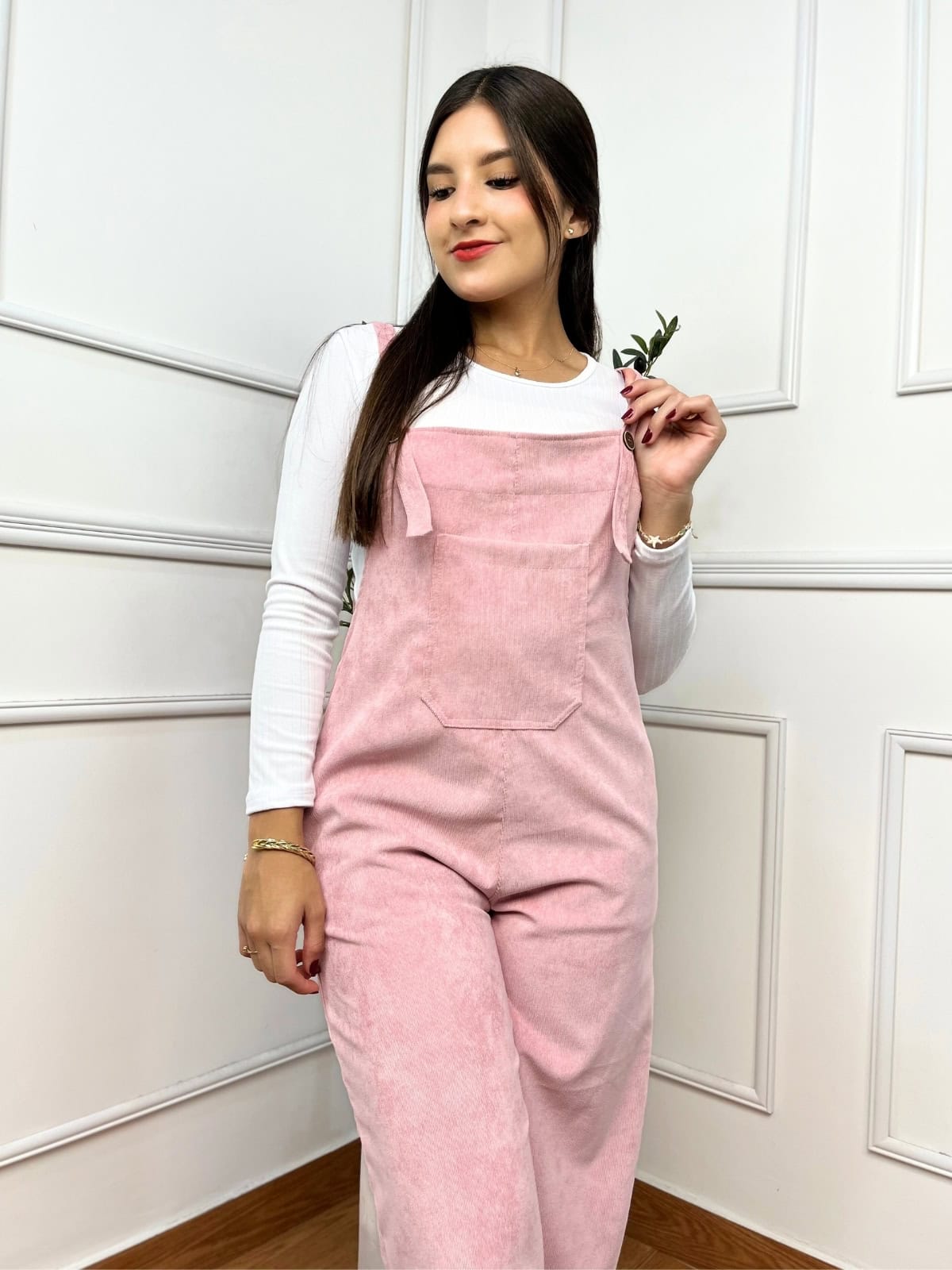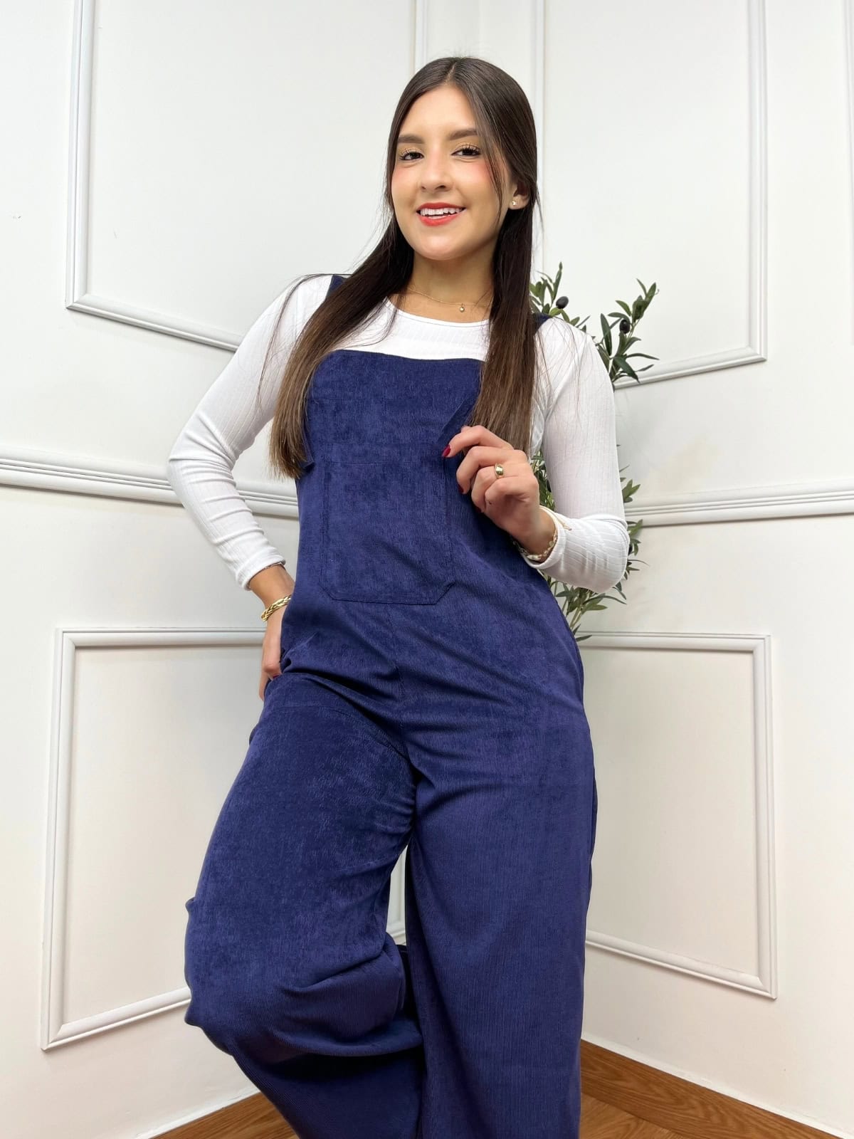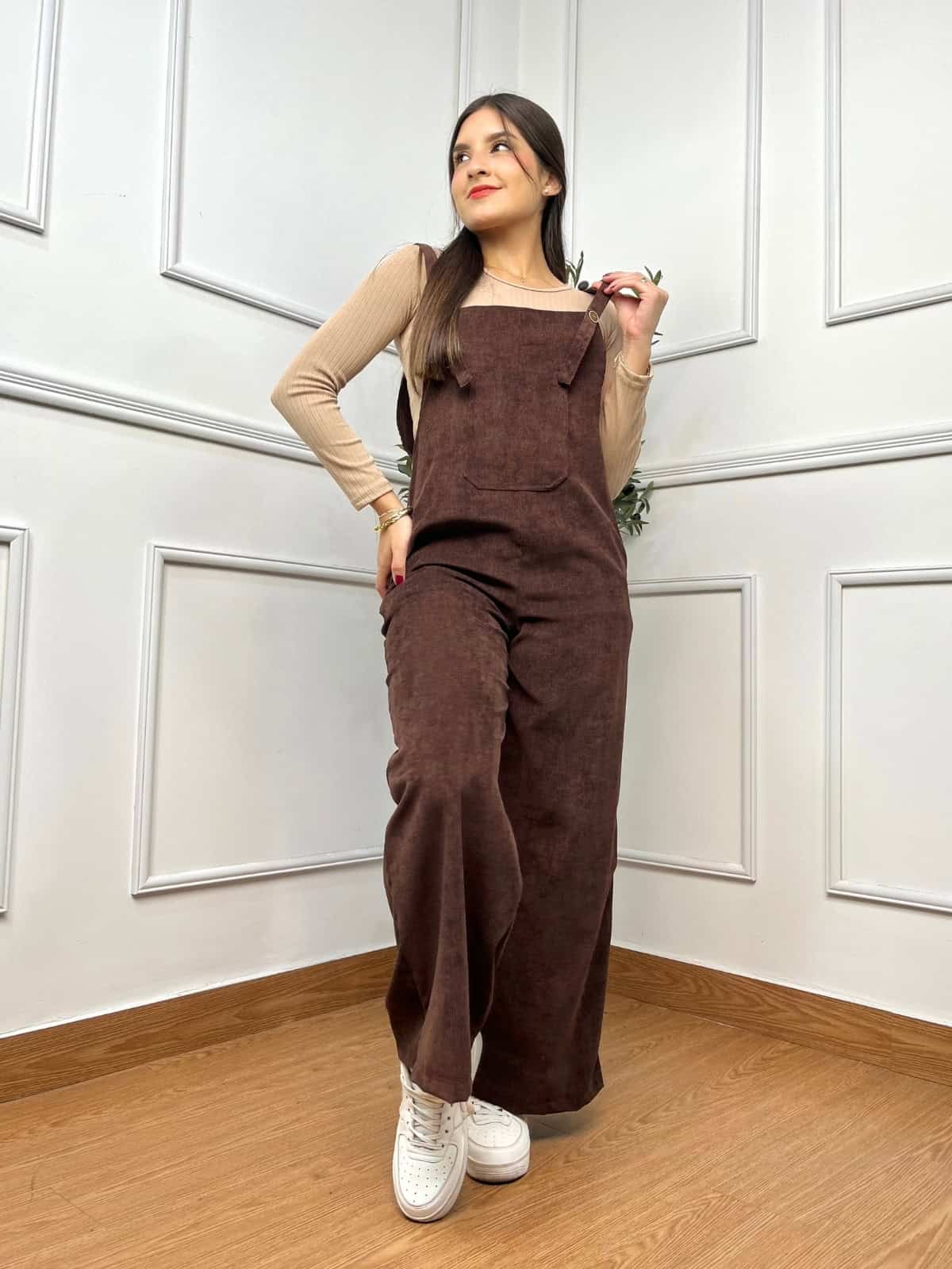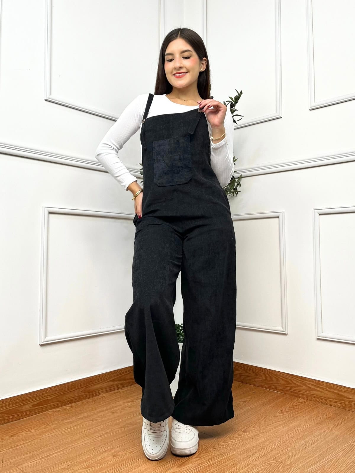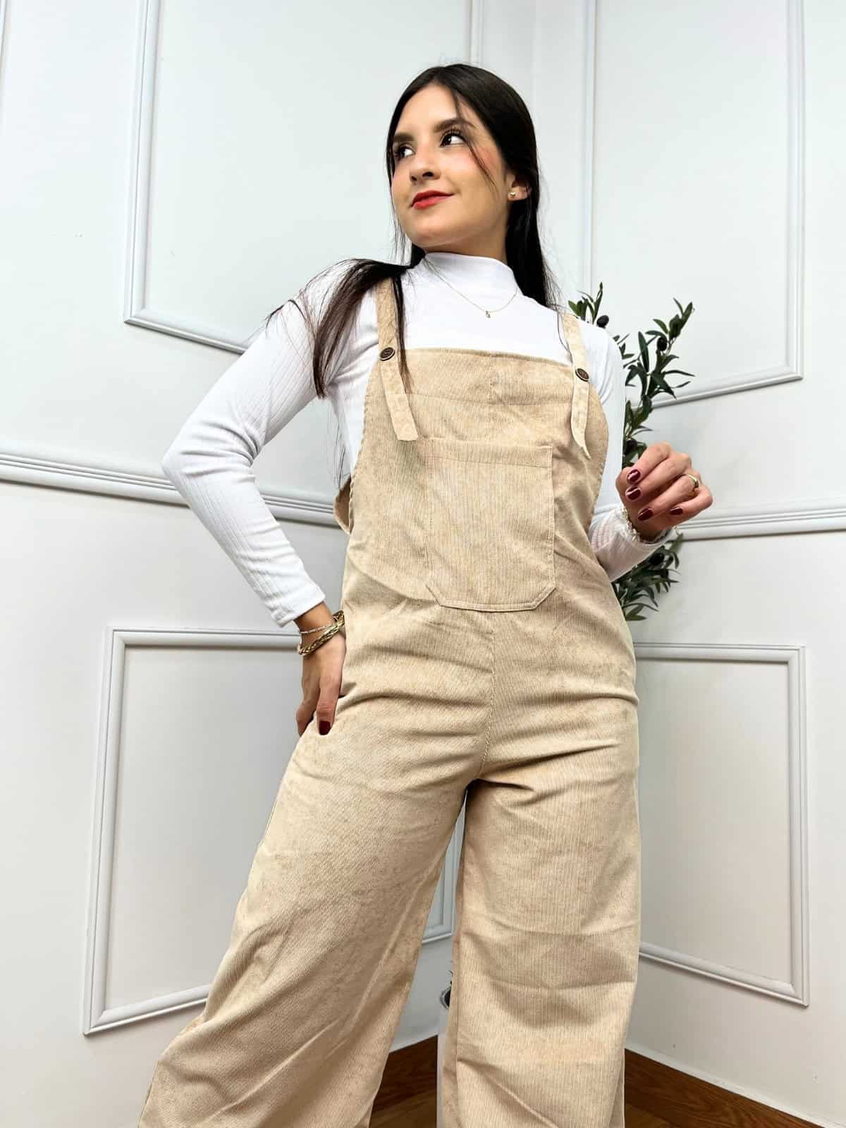 Overol en material corduroy, perfecto para un look casual y con estilo. Su textura suave y cálida lo hace ideal para la temporada, combinándolo fácilmente con tops o chompas. ¡Una prenda versátil que no puede faltar en tu closet!